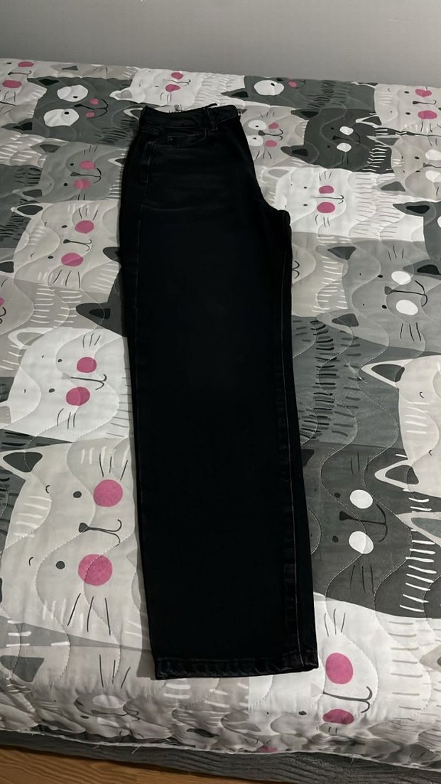 Siyah kot pantolon, regular kesim ve uzun boyda, gotik tarzda sokak modası havası sunar. Günlük kullanım için rahat ve şık.