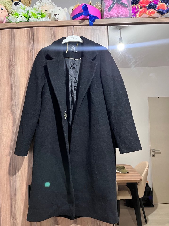 Siyah renkte 38-40 beden uyumlu tek düğmeli kaban