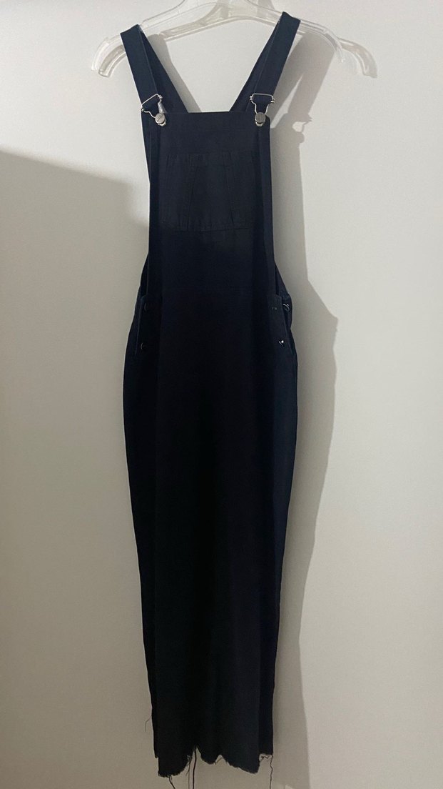 Siyah Uzun Kadın Salopet Bel Detaylı