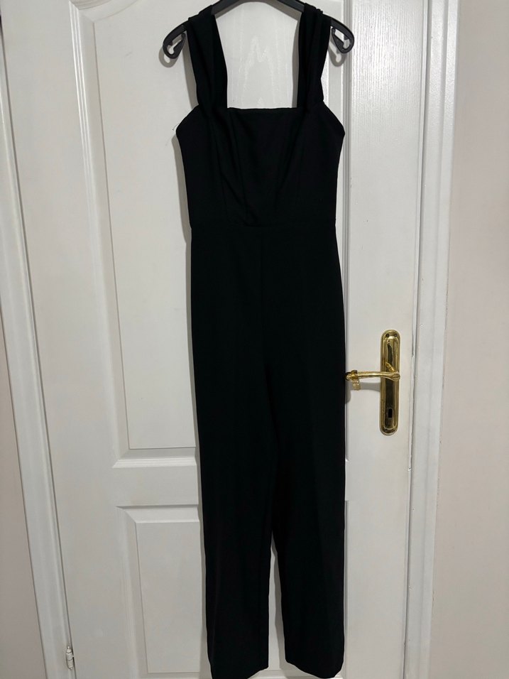 Bir kere arkadaşımın nişanında giydim gayet iyi durumda askıları genel olarak düşük kullanılıyor üst büstiyer kısmında içten kendi yapışkanı var uzun tulum olarak geçiyor.