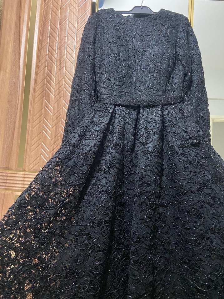 Siyah Uzun Kemerli Dantel Abiye