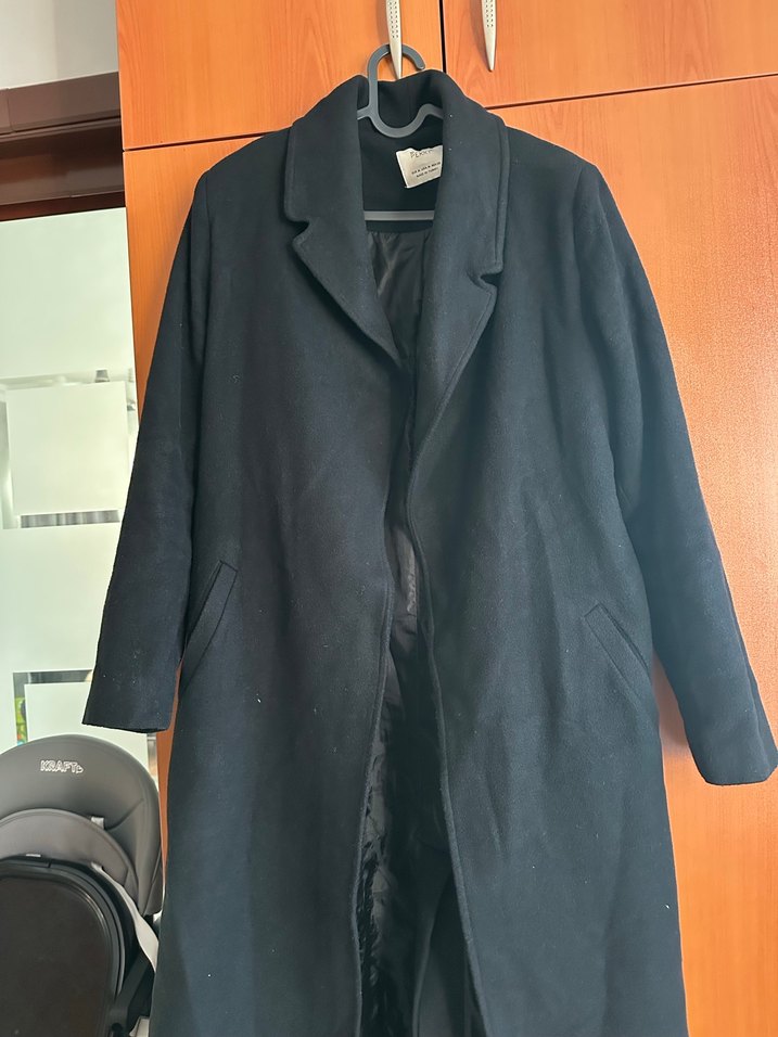 Siyah uzun kaban, klasik yaka ve yan ceplere sahiptir. Düz astarlı ve sade şık tasarımıyla soğuk havalar için uygundur. ❄️ Sorunu yoktur.