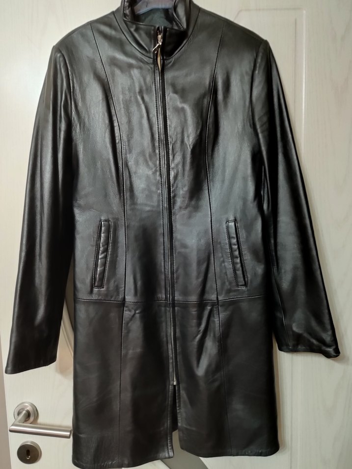 Siyah Uzun klasik Deri Kadın Ceket gerçek deri