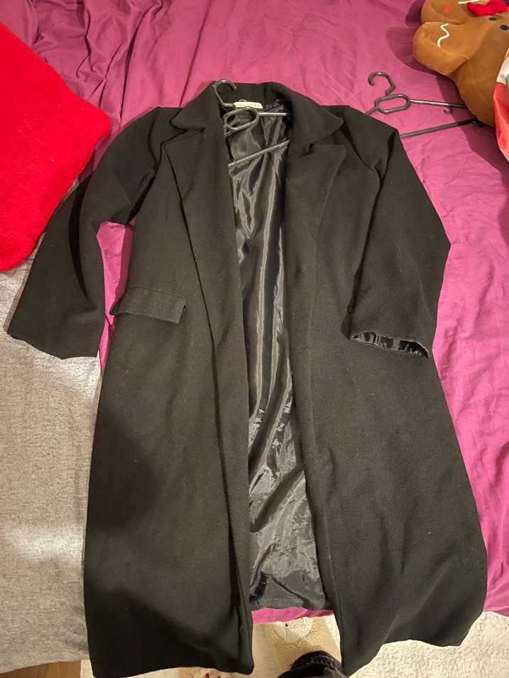 Astarlı uzun siyah kaban çok kalın değildir her mevsime uygun deformesi yok