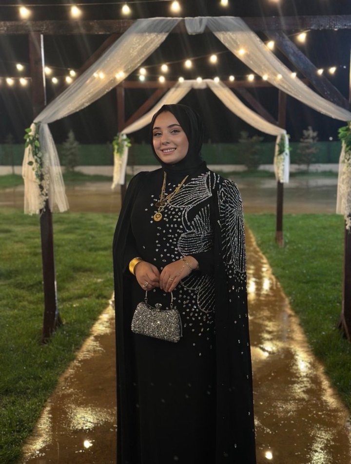 Siyah Uzun Kol Drapeli Tesettür Abiye
