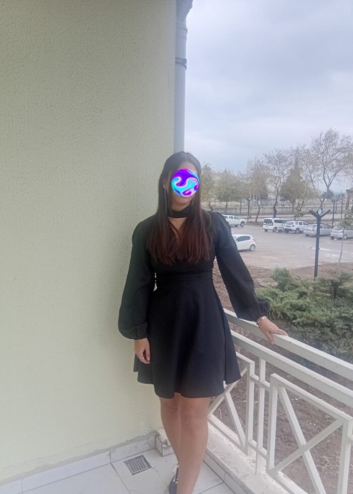 Siyah uzun kol kısa elbise