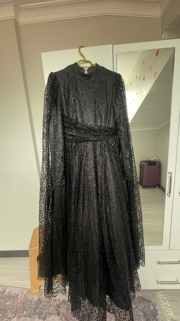 Siyah, uzun kollu abiye elbise