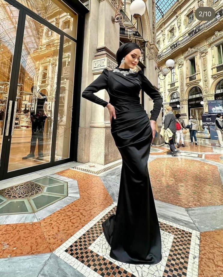 Kiralık Siyah Uzun Kollu Abiye Elbise