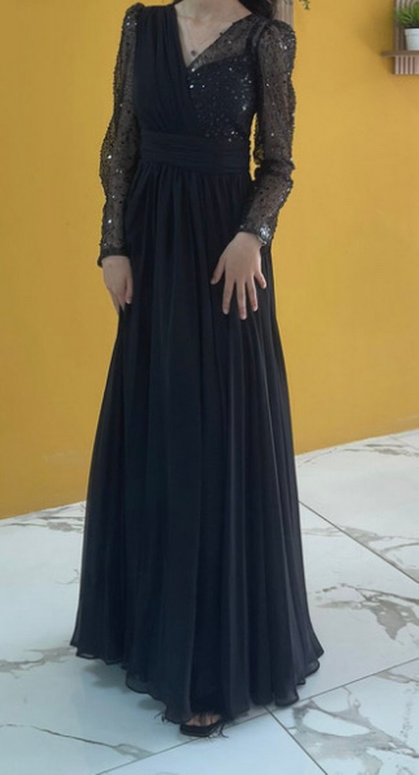 Siyah Uzun Kollu Abiye Elbise