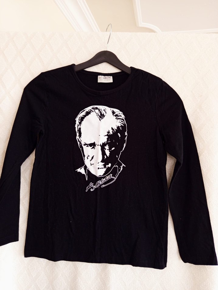 Siyah Uzun Kollu Atatürk Baskılı Tişört