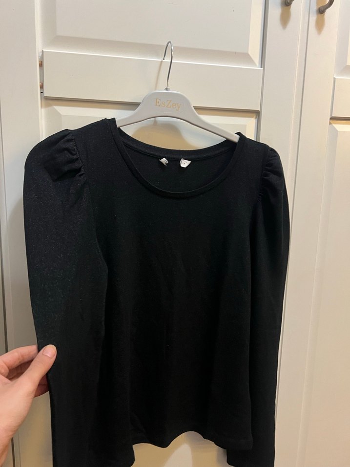 Siyah Uzun Kollu Balon kol Kadın Bluz