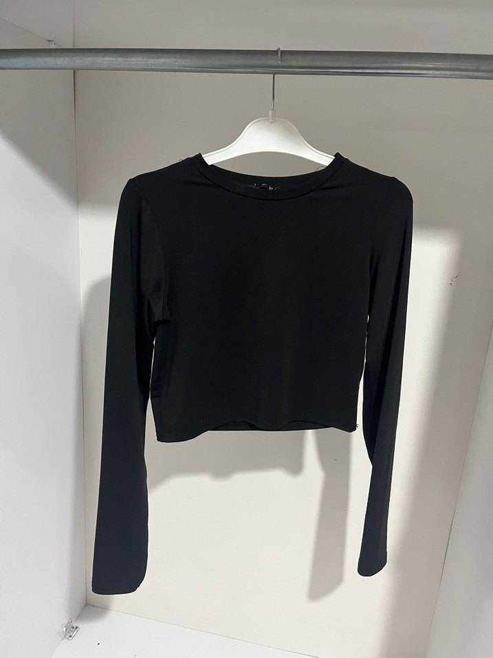 Siyah, uzun kollu ve yuvarlak yakalı bu dar kesim bluz, yumuşak sentetik kumaştan üretilmiştir. Minimalist, desensiz tasarımı günlük kullanıma uygundur ve zahmetsiz şıklık sunar.