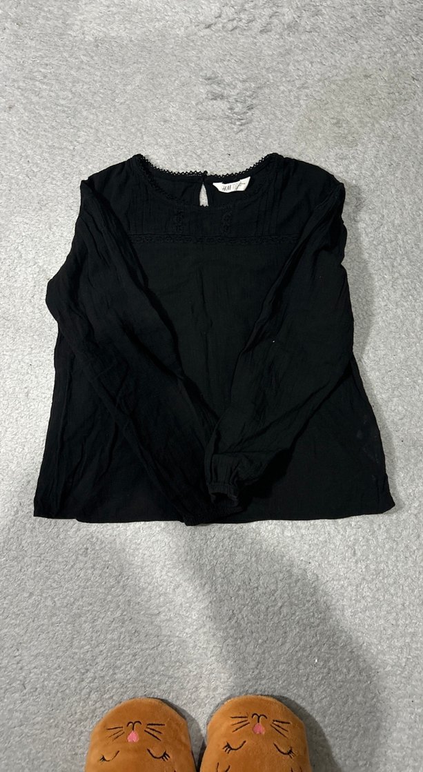 Siyah Uzun Kollu Basic Keten Bluz 12-13 yaş