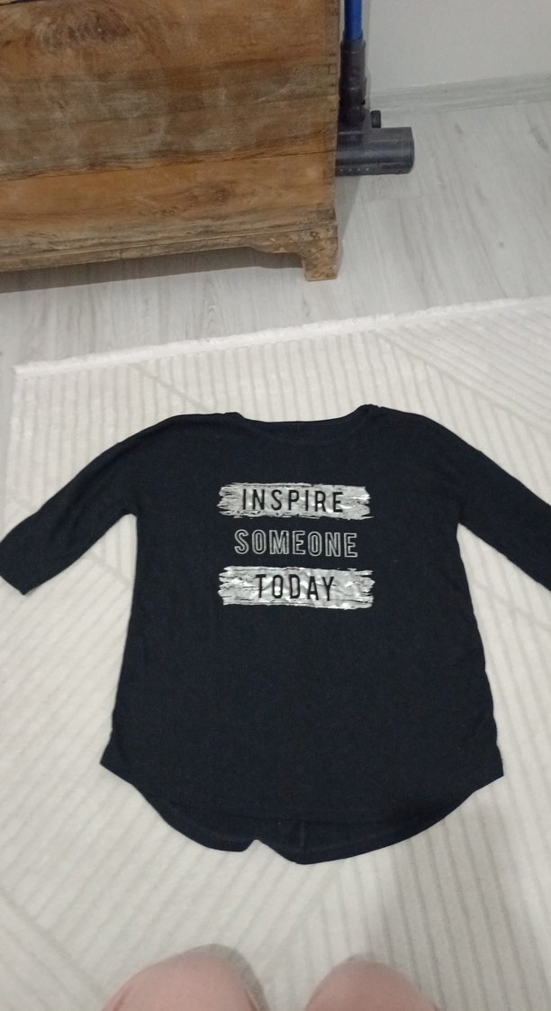 pamuklu, siyah uzun kollu, bol kesim tişört. Önünde ilham verici baskı bulunur. Rahat ve şık sokak stili için uygun. ✨