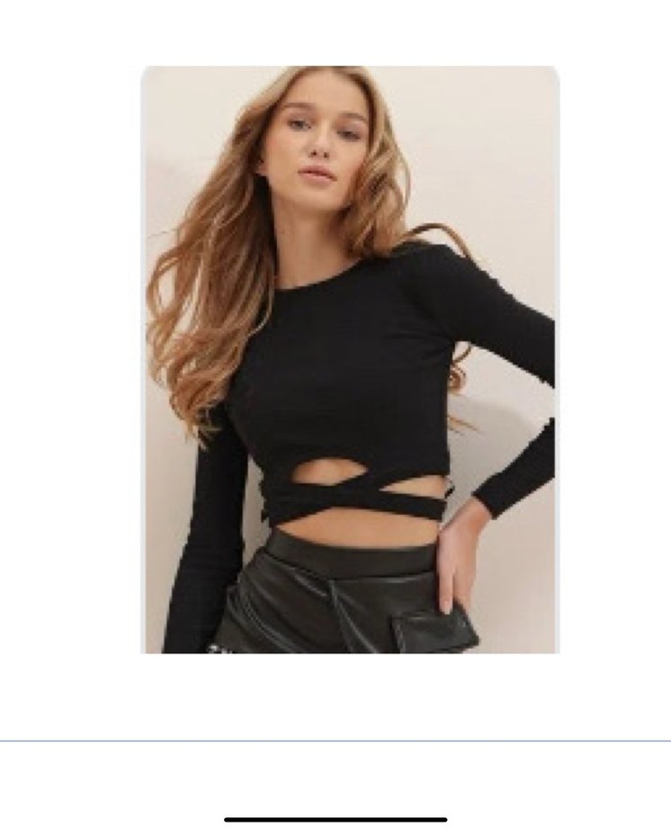 Siyah Uzun Kollu Bel Detaylı Kadın Bluz