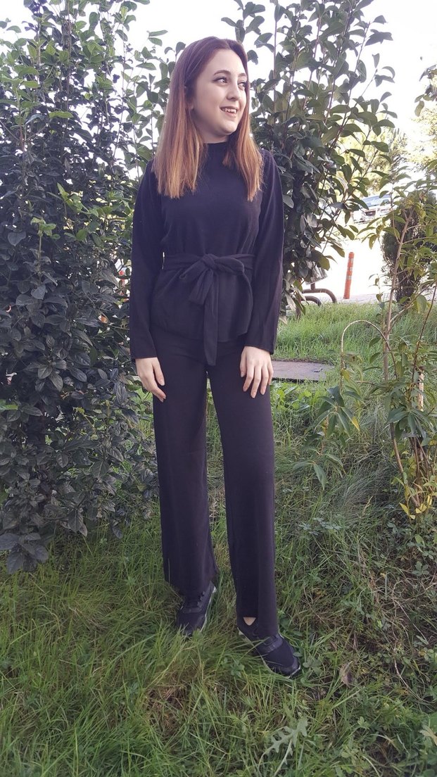 Siyah Uzun Kollu Belden Bağlamalı Takım