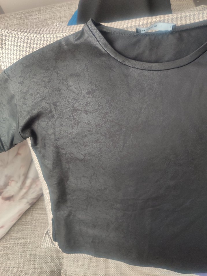 Siyah, uzun kollu, yuvarlak yakalı kollarında file detaylı tişört, rahat kesimi ve yumuşak deri görünümlü kumaşıyla günlük kullanıma uygundur.