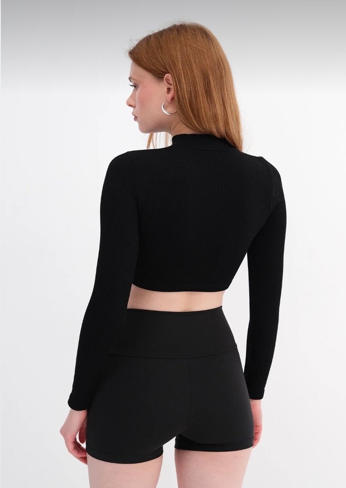 Siyah Uzun kollu Crop Bluz