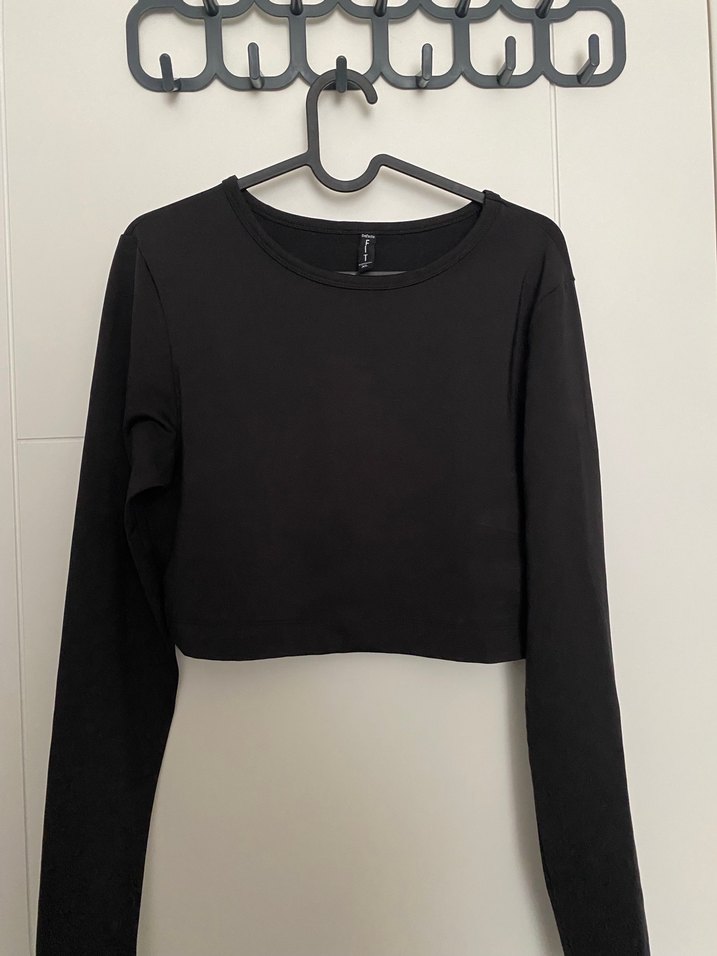 Siyah Uzun Kollu Crop Top