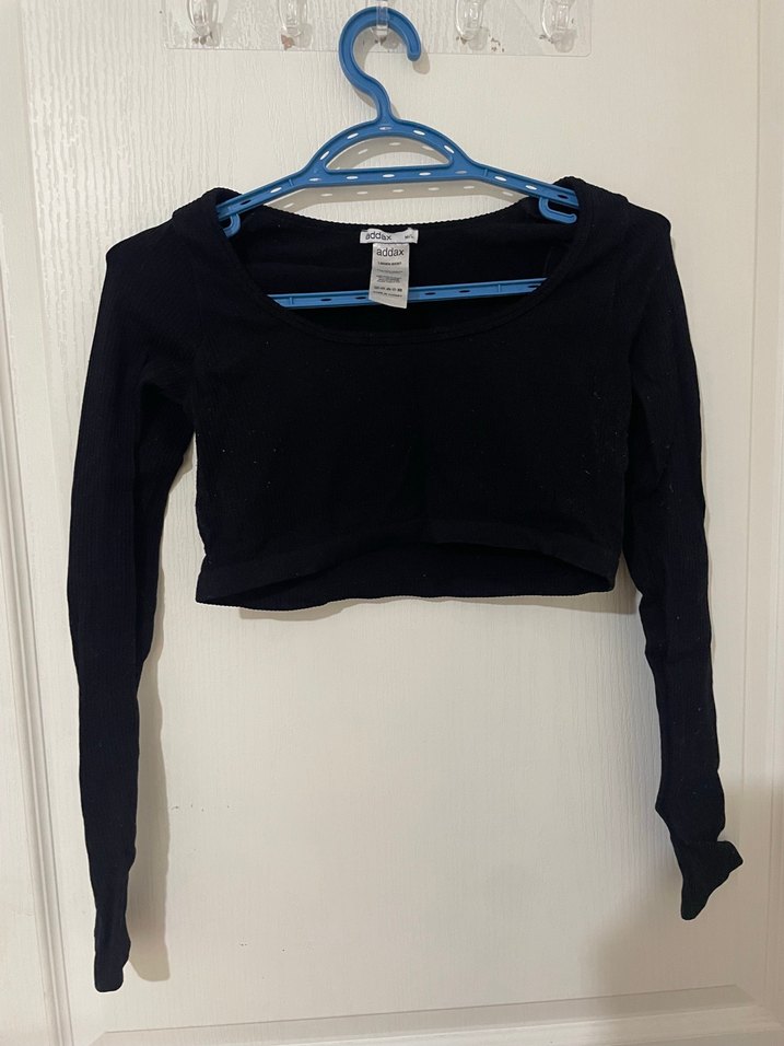 Siyah Uzun Kollu Crop Top