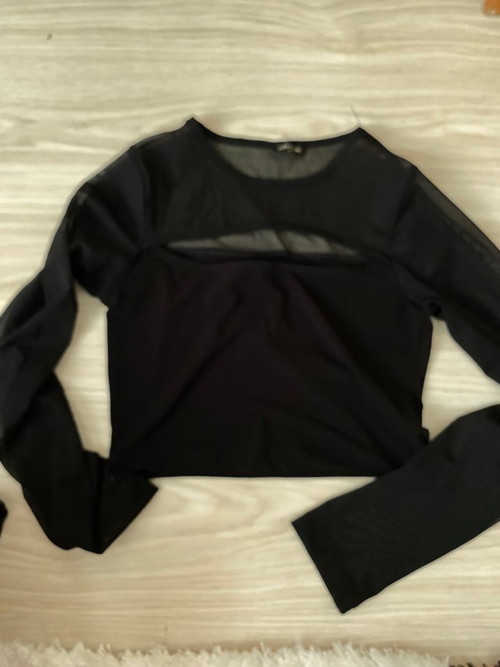 Siyah, uzun kollu, dar kesim kadın bluz, düz ve desen içermeyen tasarıma sahip, günlük kullanıma uygun, sentetik kumaştan yapılmıştır.