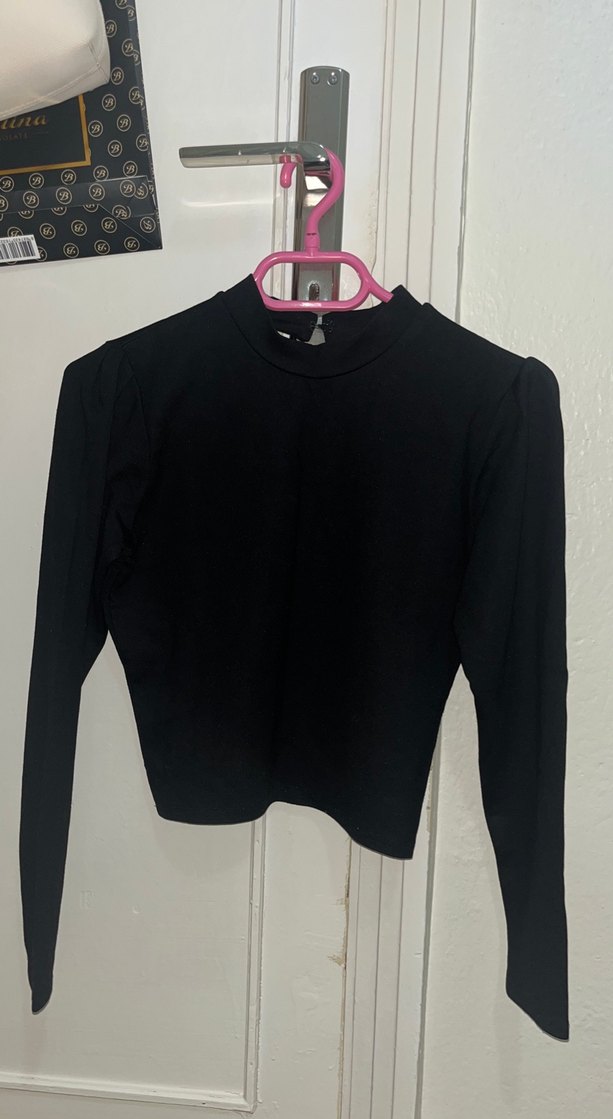 Siyah, uzun kollu, dar kesim ve yuvarlak yakalı, orta boy uzunlukta, yumuşak ve sıcak kumaştan kadın kazak. Sırtında dekoltesi mevcut . S beden tam kalıp hafif esnektir. Crop tarzında. deformesi yoktur.