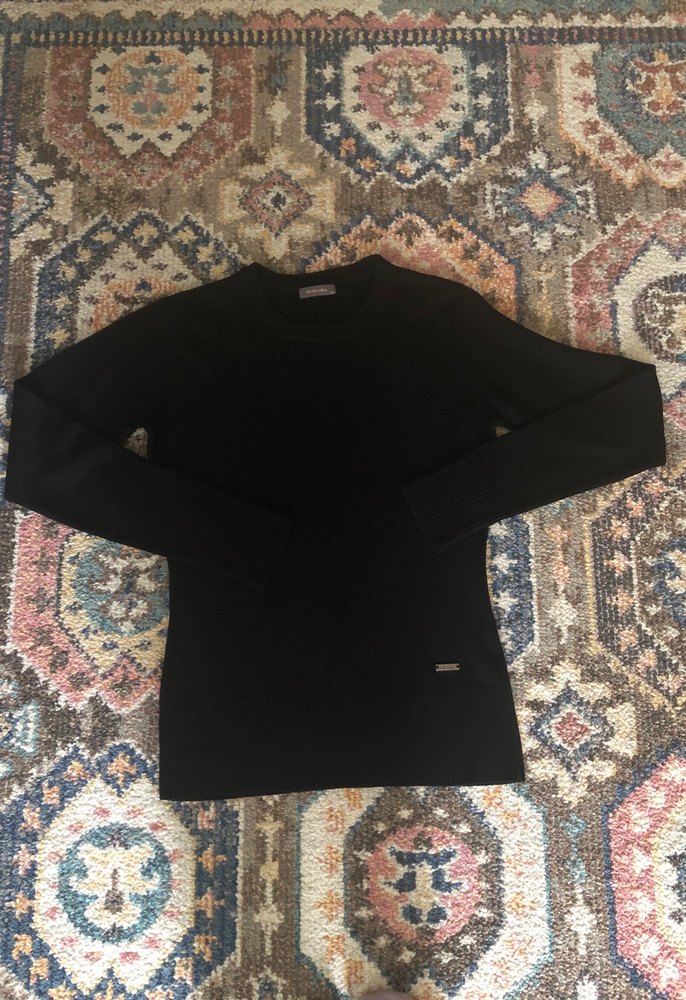 Dar kesim, uzun kollu siyah kadın kazağı, yuvarlak yaka ve yumuşak sentetik kumaştan üretilmiştir. Günlük kullanıma uygun şık ve rahat bir modeldir.