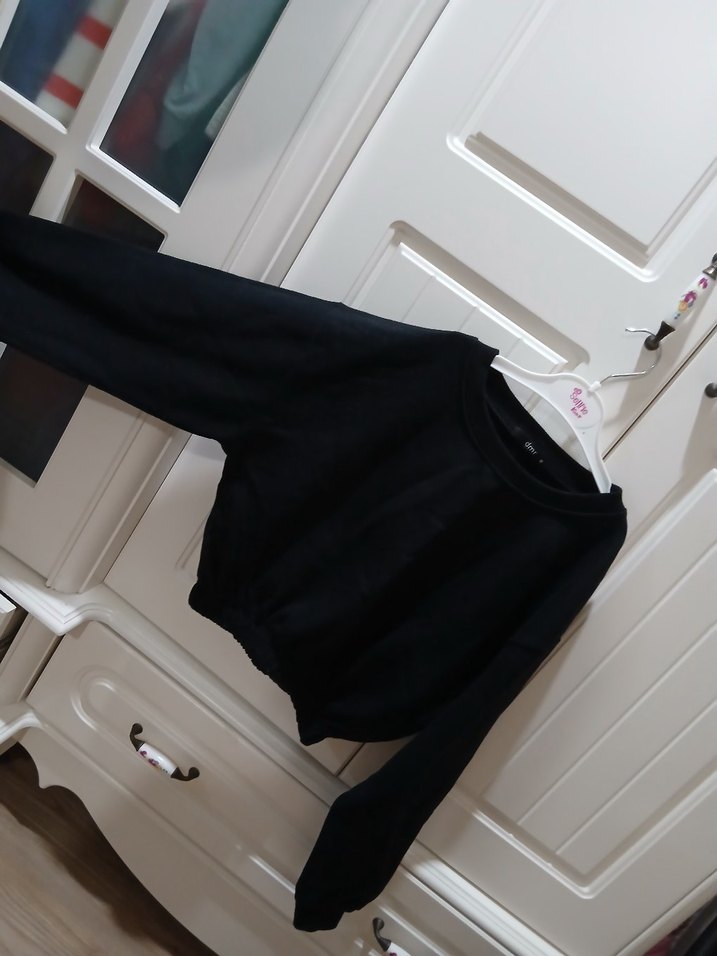 Siyah Uzun Kollu Dar Kesim Sweatshirt