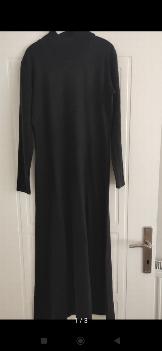 Siyah, uzun kollu, dar kesim uzun elbise. boyu 136 santimdir, iki kol arası 50 santim. Tüylenme dışında hiçbir sorunu yoktur Nefise marka kaliteli bir üründür aldığım fiyatın çok altına koyuyorum.standart beden. #kadın elbise #trikoelbise#uzunelbise