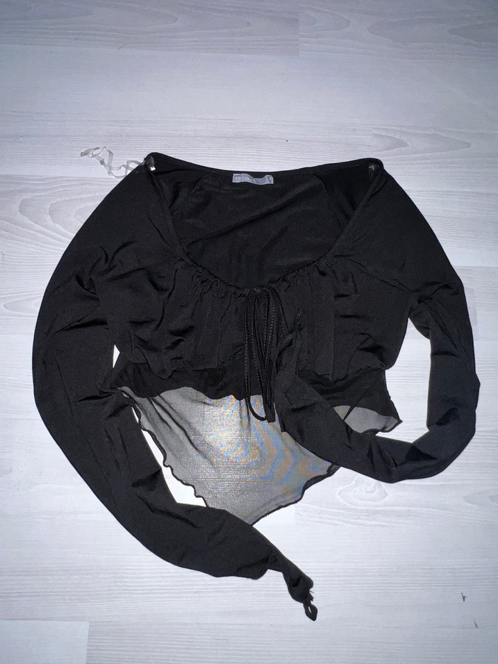 Siyah Uzun Kollu Drapeli Gotik Mini Bluz