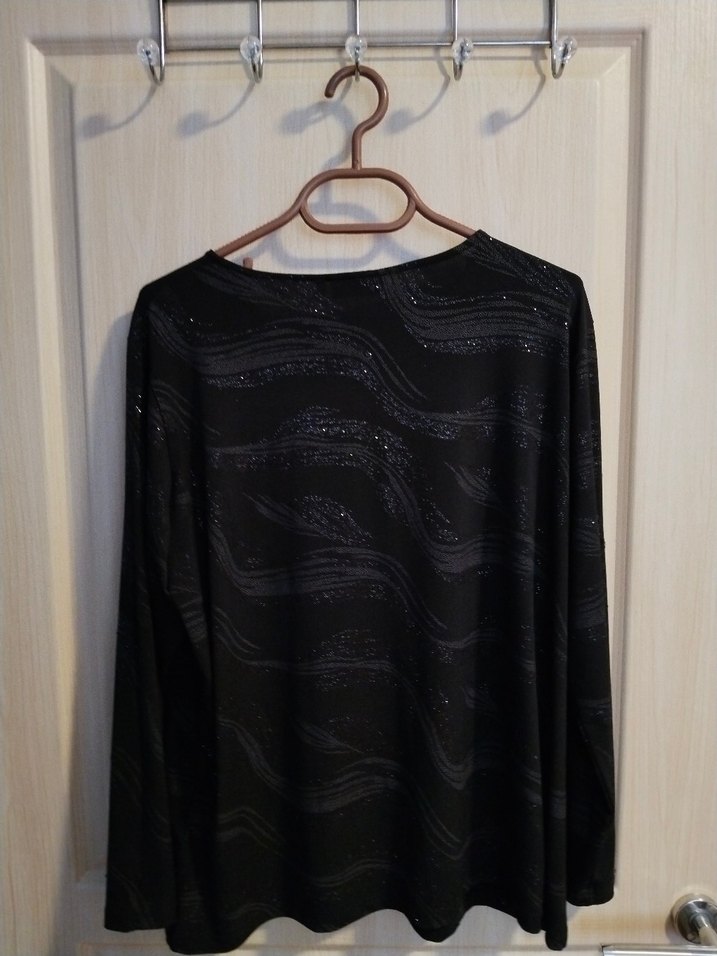 Siyah uzun kollu, drapeli ve yuvarlak yaka kadın bluz. Yumuşak sentetik kumaştan, bol kesim ve gotik tarzda, günlük kullanıma uygun.