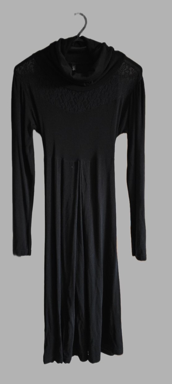Uzun kollu, yüksek yakalı ve drapeli tasarımlı