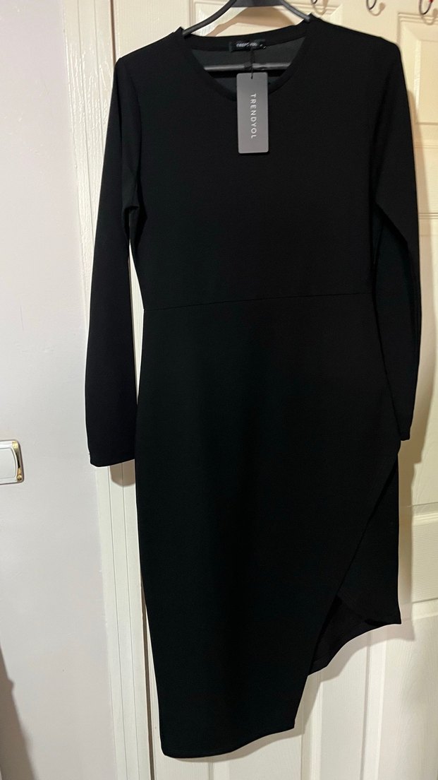 Siyah Uzun Kollu Drapeli Kadın Elbise