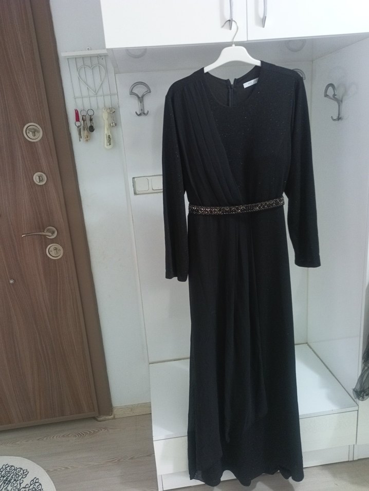 siyah büyük beden abiye sadece bir kere giyinildi beli kuşaklı