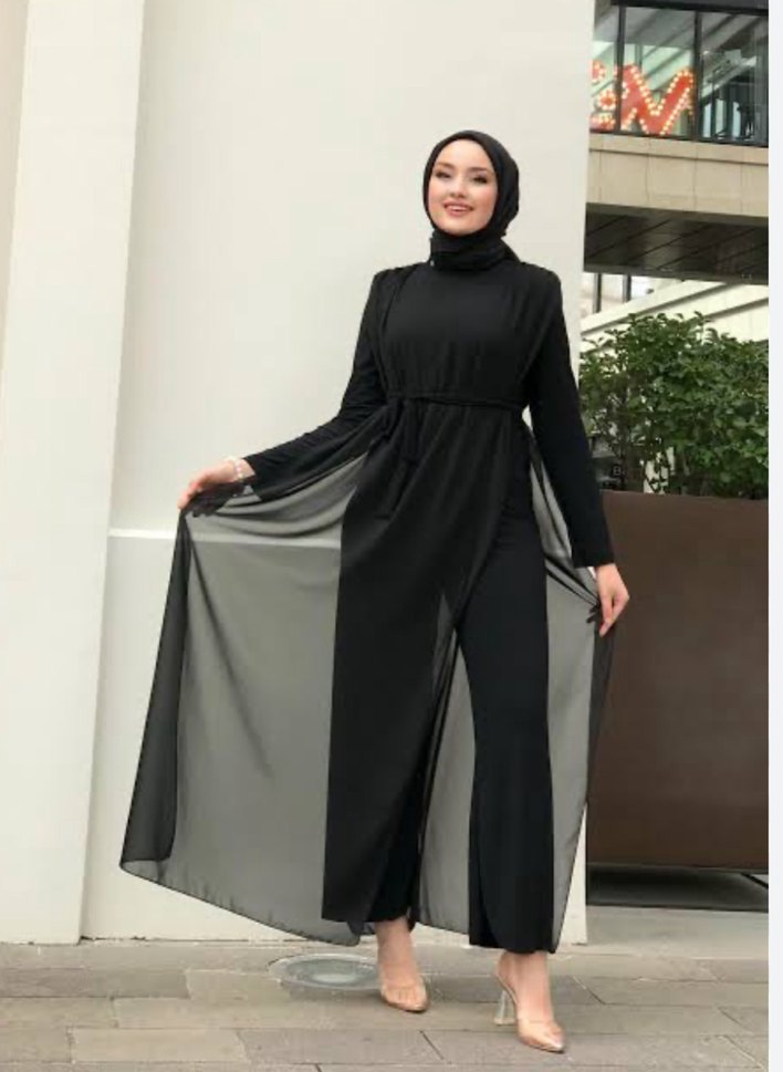 Siyah renkte, uzun kollu ve yüksek yakalı, drapeli tasarıma sahip uzun elbise. Sentetik kumaştan, günlük kullanıma uygun rahat kesim.