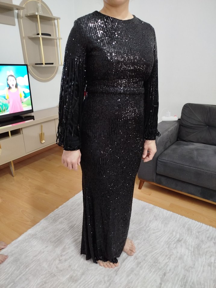 Siyah Uzun Kollu DrapeliAbiye Elbise