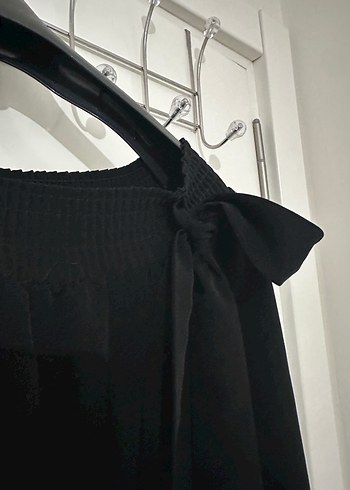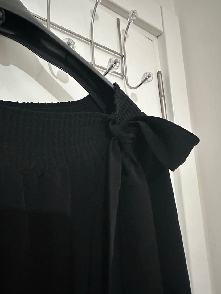 Siyah ferace elbise , belden kemeri vardır. tekne yakalıdır, büzgülü kol detaylarına sahiptir. Bol kesim 36-38 beden uyumlu ve ipeksi dokusuyla minimalist ve sade tarzıyla günlük ve şık tesettür kullanıma uygundur.