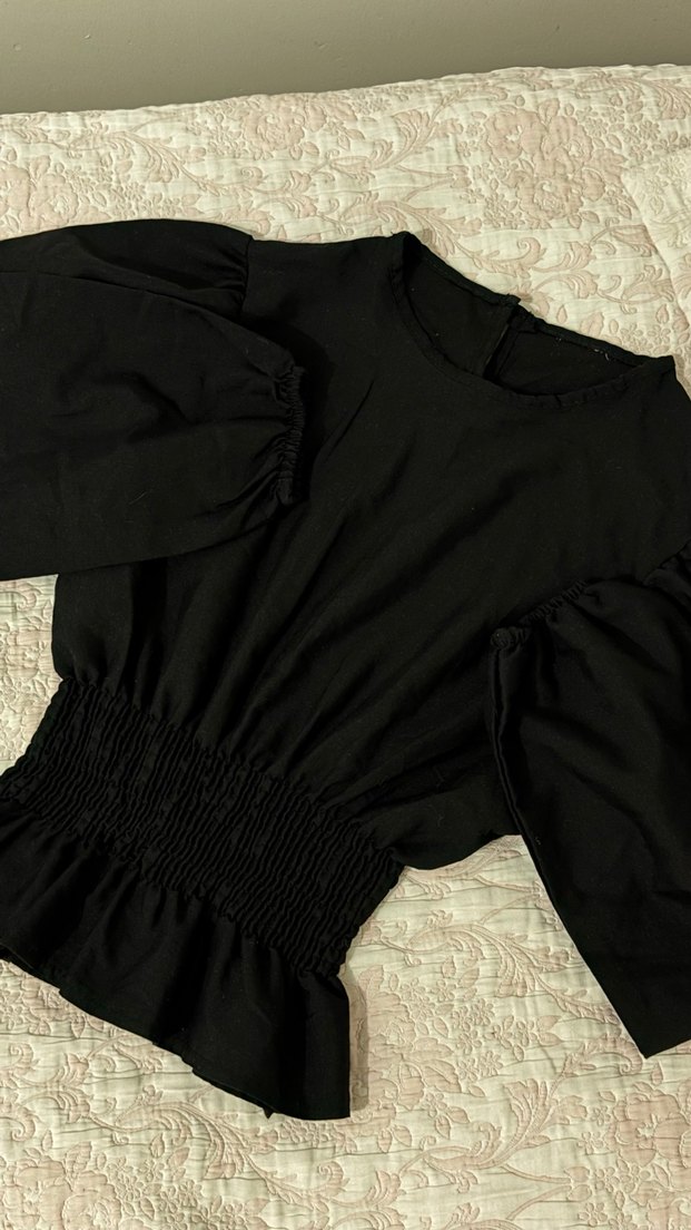 Siyah Uzun Kollu Fırfırlı Kadın Bluz