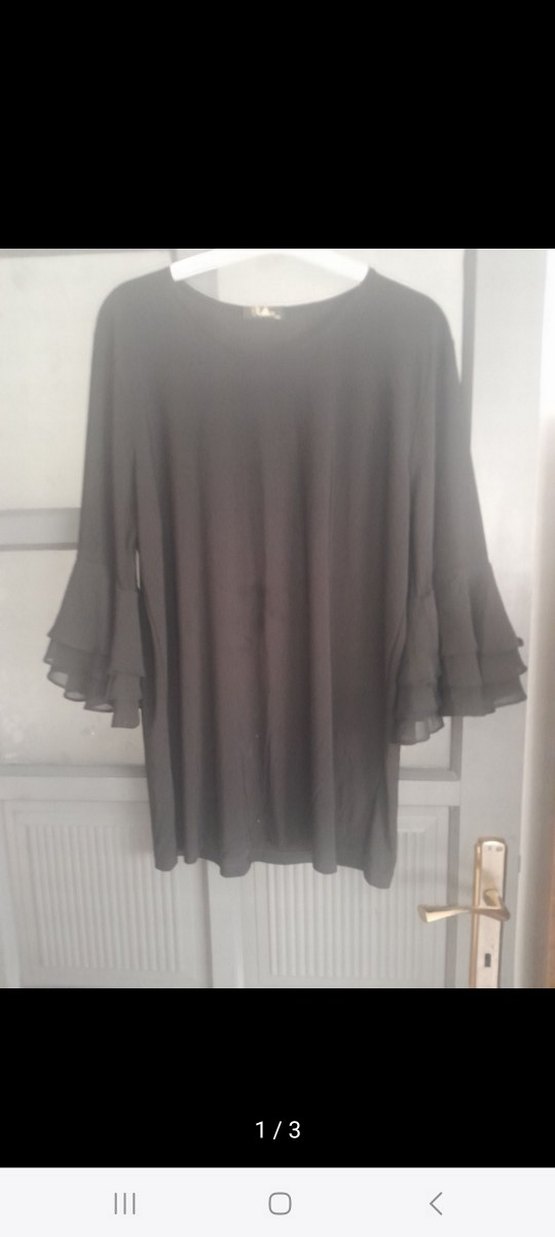 Uzun kollu, fırfırlı detaylı siyah midi tunik. Yuvarlak yaka ve bol kesim ile günlük kullanıma uygun gotik tarzda. Kolları çok tarz