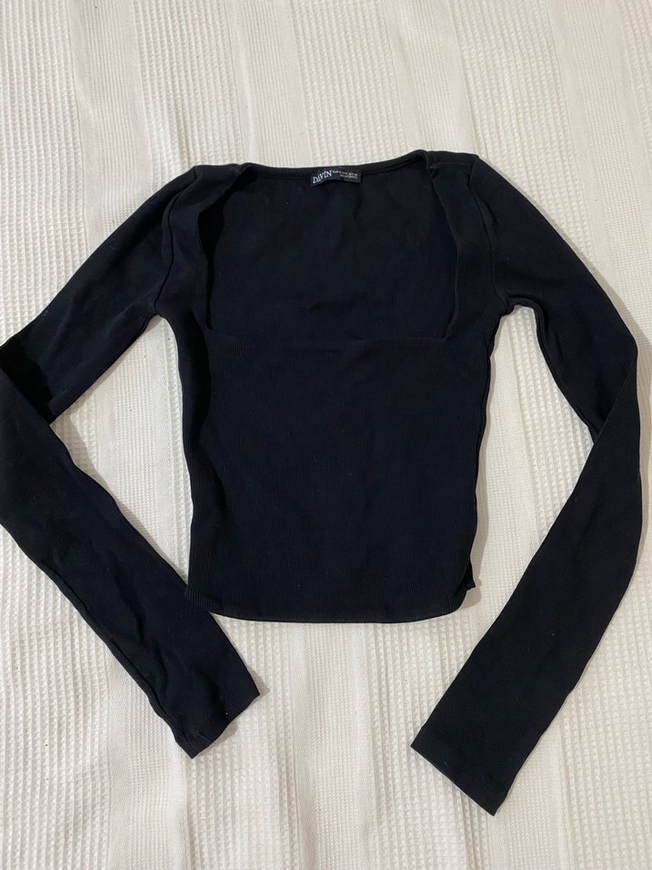 Siyah, uzun kollu ve tekne yaka olan bu fitted bluz, yumuşak sentetik kumaştan yapılmıştır. Minimalist gotik tarzıyla günlük kullanıma uygundur.