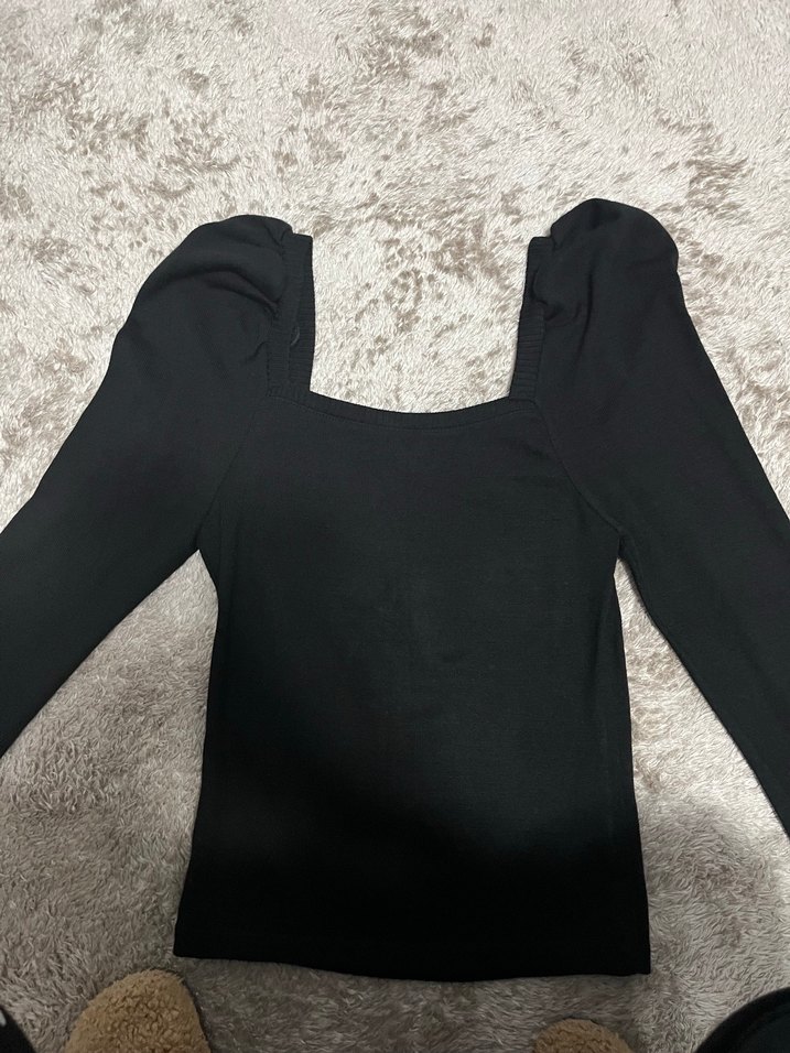 Siyah, uzun kollu ve tek renkli bu fitted bluz, rahat ve sıcak kumaştan yapılmıştır, goth tarzı için uygundur. Deforme yoktur kare yaka
