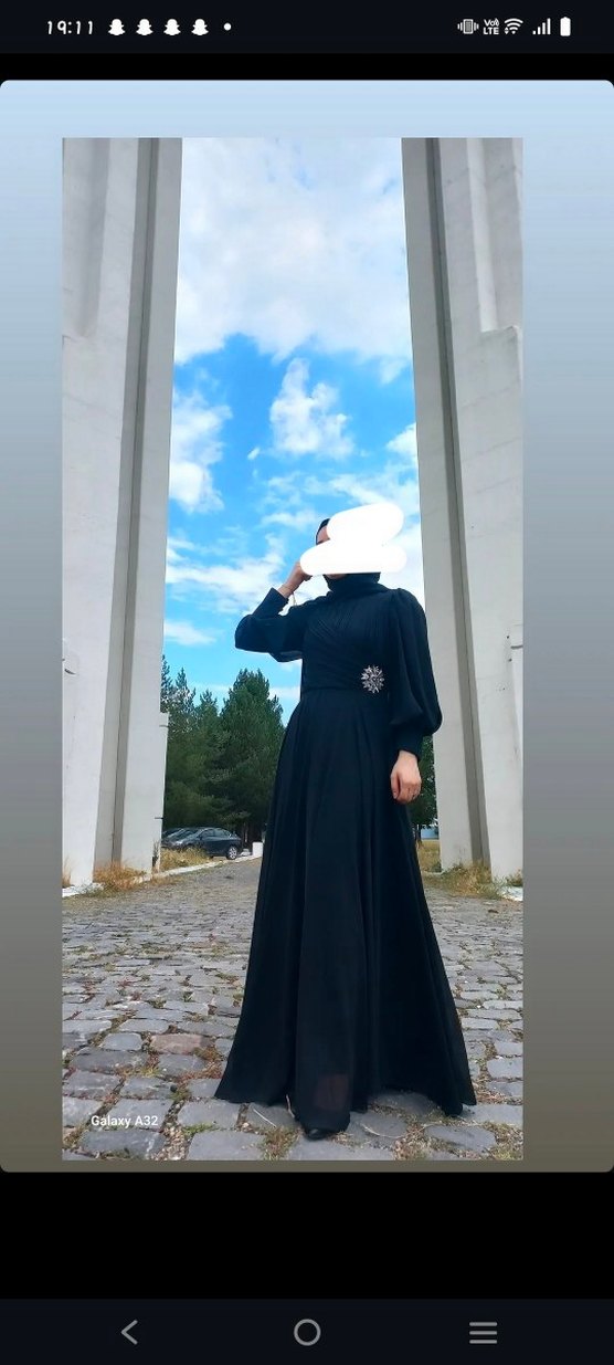Siyah uzun kollu, yüksek yakalı ve drapeli bu abiye elbise, gevşek kesimi ve zarif çiçek deseniyle gotik tarzda modest şıklık sunar. 2 kez giyildi hiç kuru temizlemeye gitmediginden etek uclarinda lekeleri var (toz vb) biraz uyguna vericemm o yüzden ama yırtılma deforme gibi hiç bir sorunu yoktur elbise boyu 144 cm
