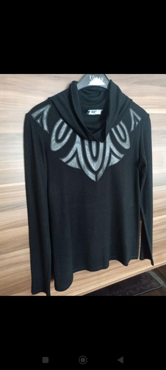Siyah uzun kollu, yüksek yaka ve drapeli, gotik desen baskılı bluz. Yumuşak sentetik kumaştan, bol ve uzun kesim, günlük kullanım için uygundur. #Adilışık#Zara#Mango