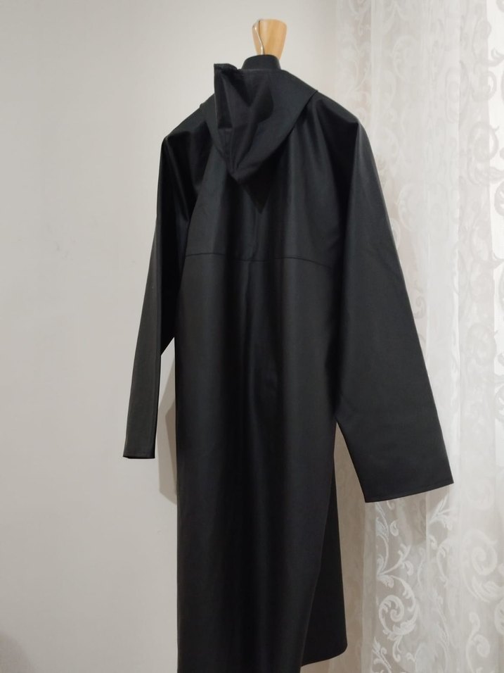 Sentetik kumaştan üretilmiş, yüksek yakalı ve bol kesim siyah uzun kollu yağmurluktur. Gotik tarzı için uygundur ve günlük kullanım içindir. ☔