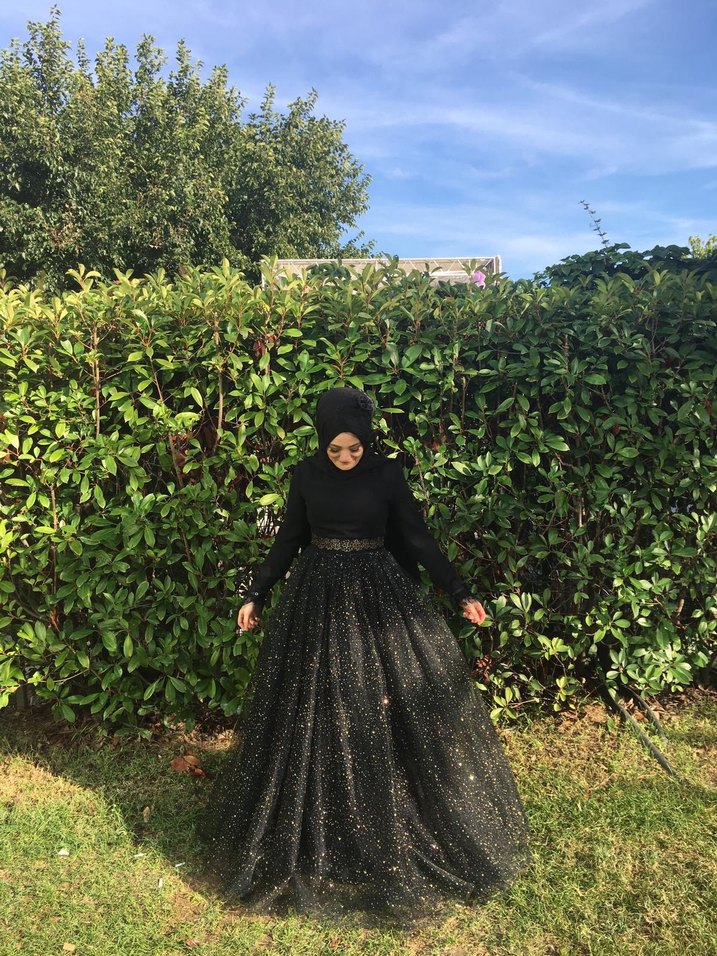 Siyah Uzun Kollu Gotik Kabarık Abiye
