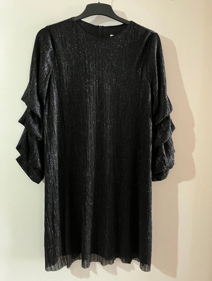 uzun kollu, bol kesim ve yuvarlak yaka detaylı siyah gotik kadın elbisesi, ofis için uygun şık bir parçadır.