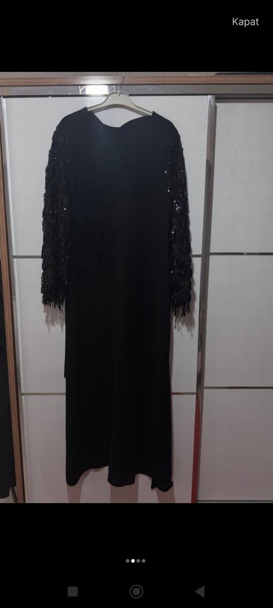 Siyah uzun kollu elbise, drapeli detaylara ve V yaka tasarıma sahiptir. Sentetik kumaştan üretilmiş, regular fit ve gotik stile uygundur. 36.38.40.42.44