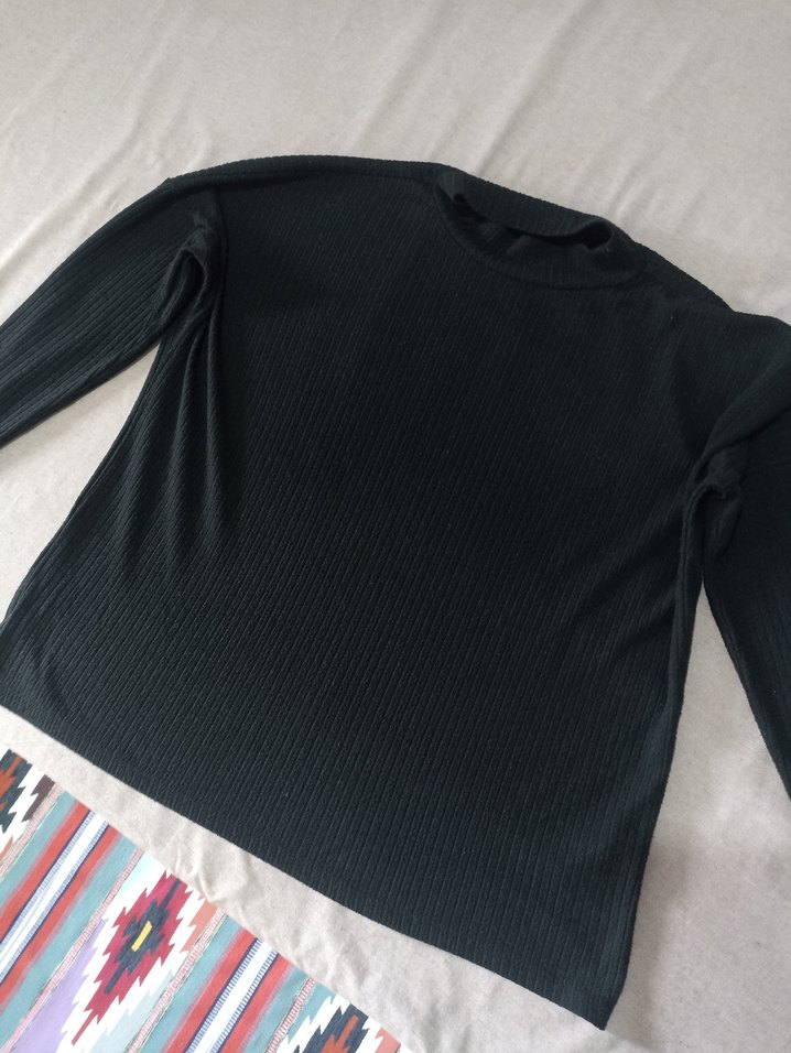 Siyah hamile tişörtü, uzun kollu ve yuvarlak yakalıdır. Örgü dokusu ve bol kesimiyle rahat bir kullanım sunar. Desensiz, günlük kullanıma uygundur.