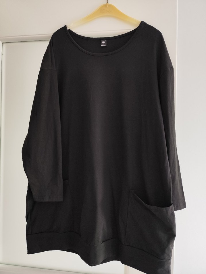 Siyah renkli, uzun kollu, bol kesim hamile tunik. Keten kumaştan yapılmış, yuvarlak yaka ve normal midi boyda. Rahat ve şık görünüme sahip.