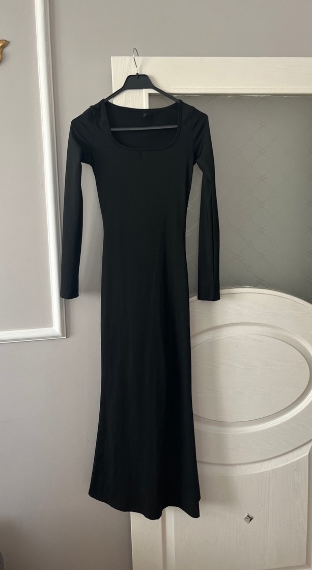 Siyah Uzun Kollu İnce Kesim Uzun Elbise - Görsel 2